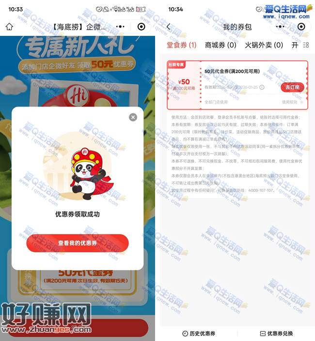 微信打开下方小程序 底部一键领取 代金券 没有添加企微就添加一下返回领取