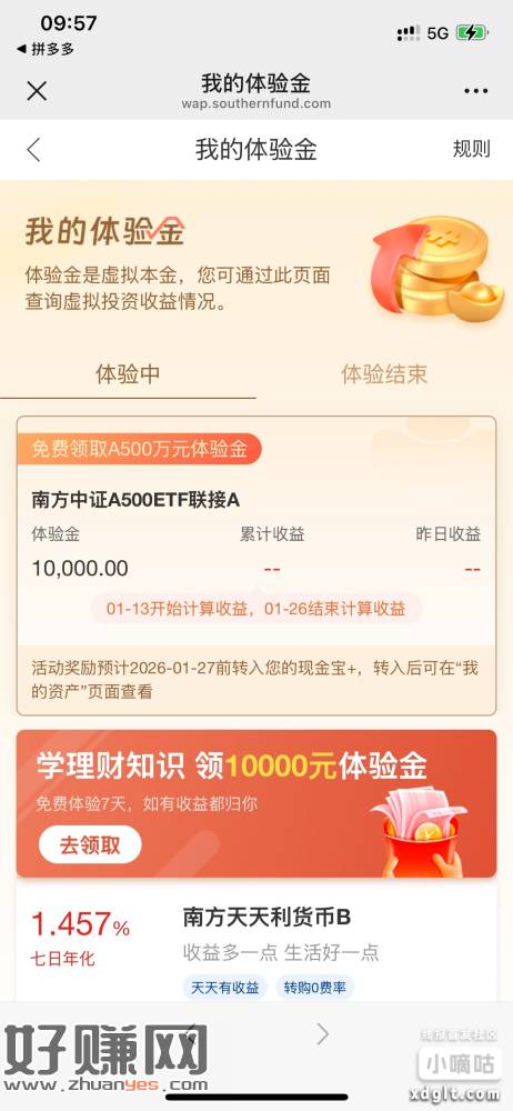 南方基金首页→横幅→领10000体验金。