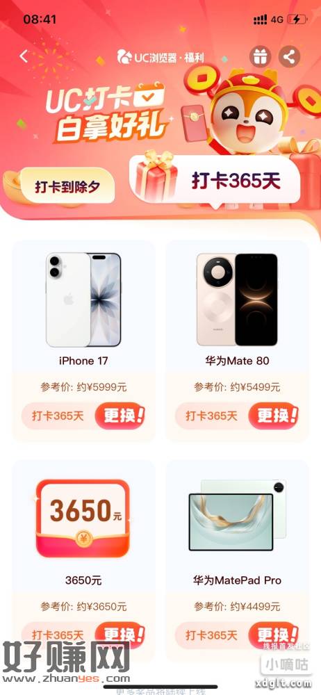 有iphone17、华为手机、3650亓可选
