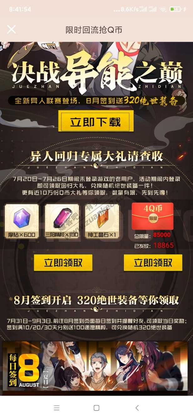 一人之下游戏老用户领4QB