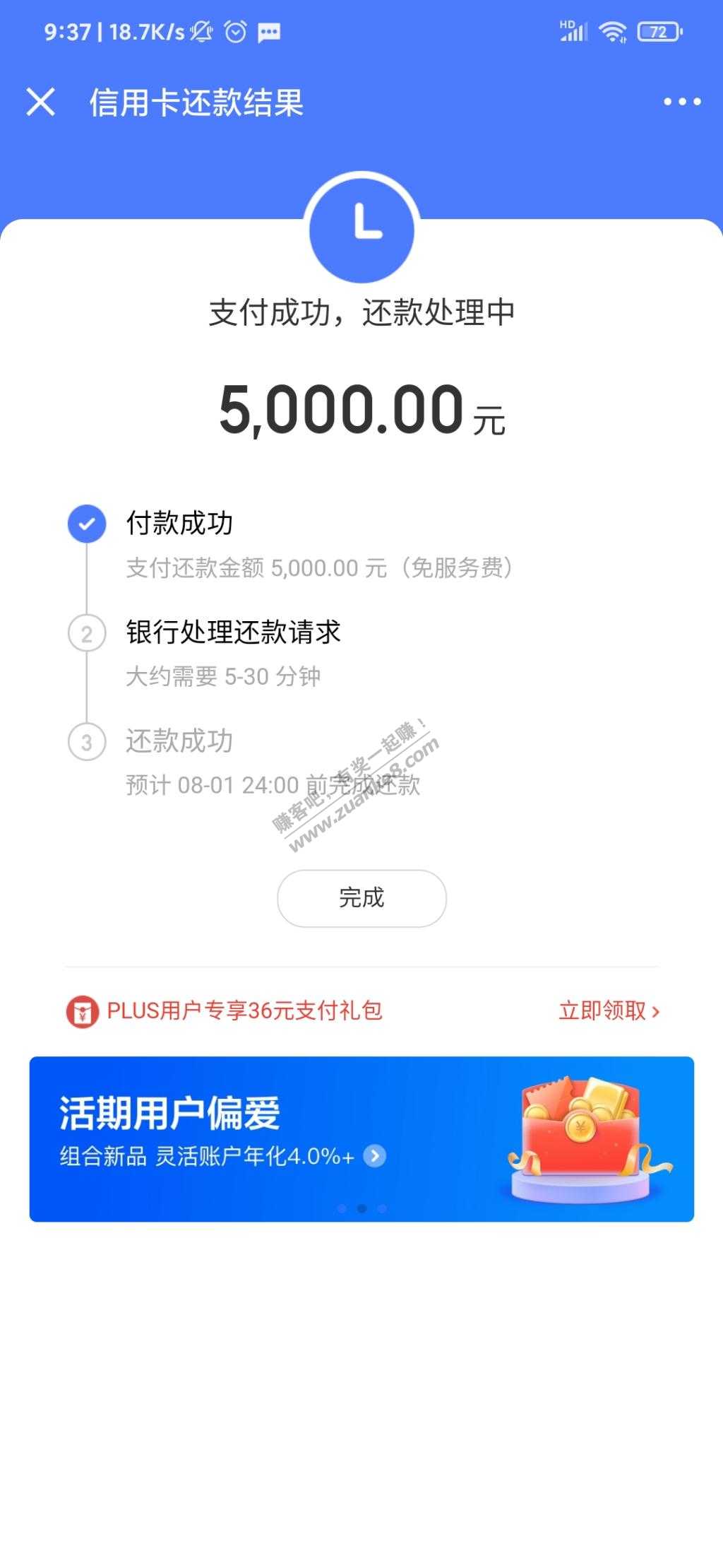 使用小金库还款后,结束页面