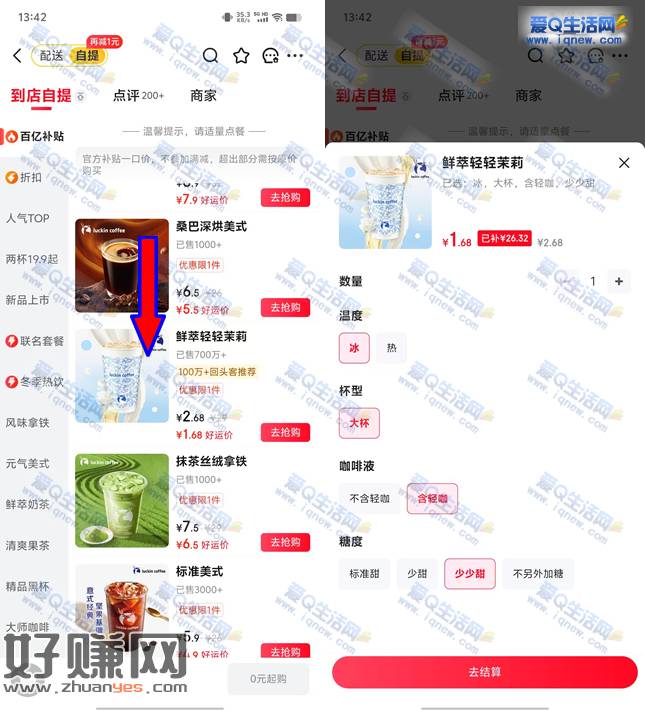 还可以直接1.68元自取瑞幸咖啡鲜萃轻轻茉莉
