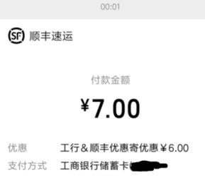 微信顺丰速运小程序,我的-礼品卡,自定义买13元的面额,微信支付用工行,满13-7,储蓄卡xyk都可以,每天各一次,每月各4次