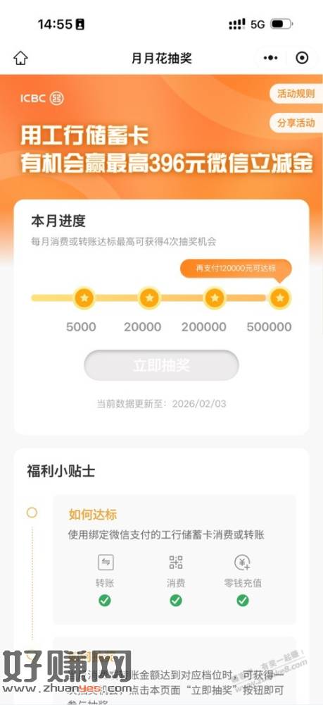 工行月月花抽奖更新
