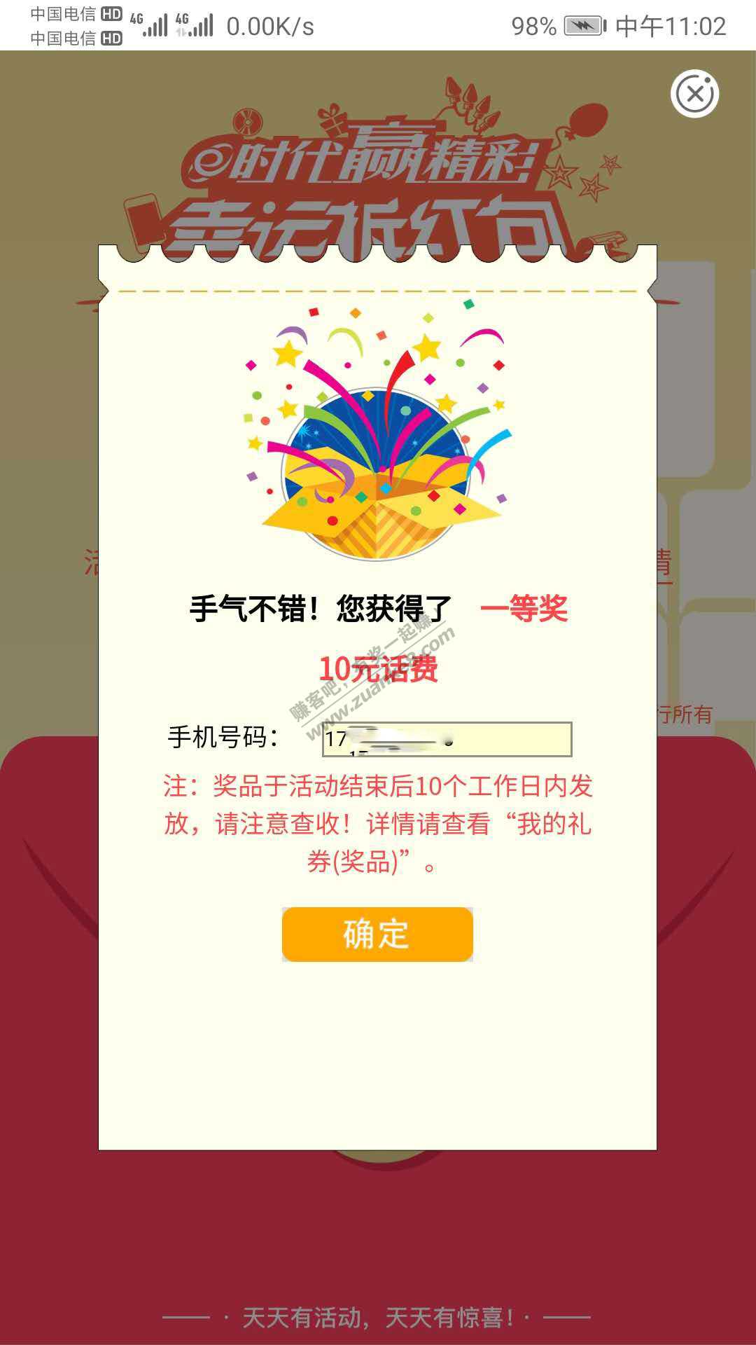 农行掌银抽奖活动 刚中10话费