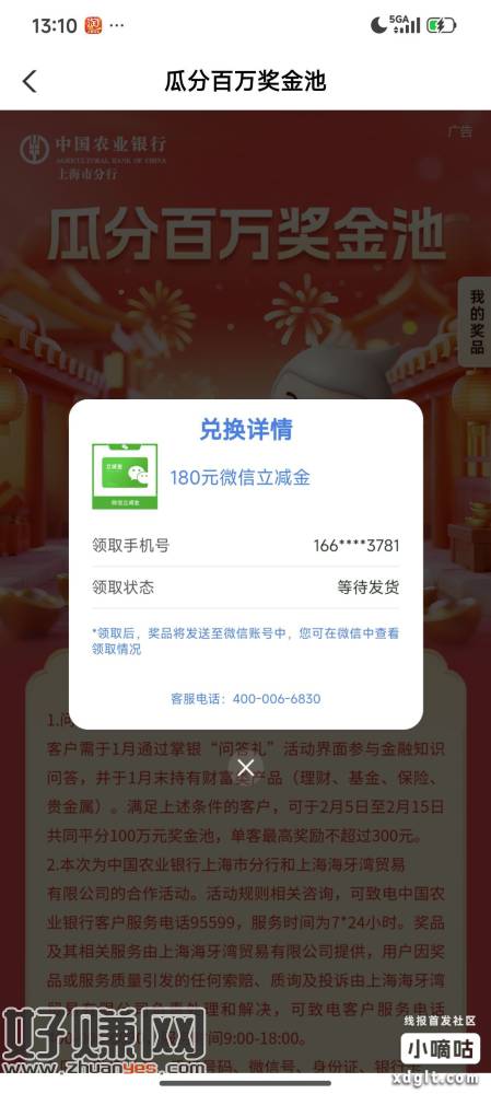 上海农行可以 啥也没参加来条短信送我180立减金