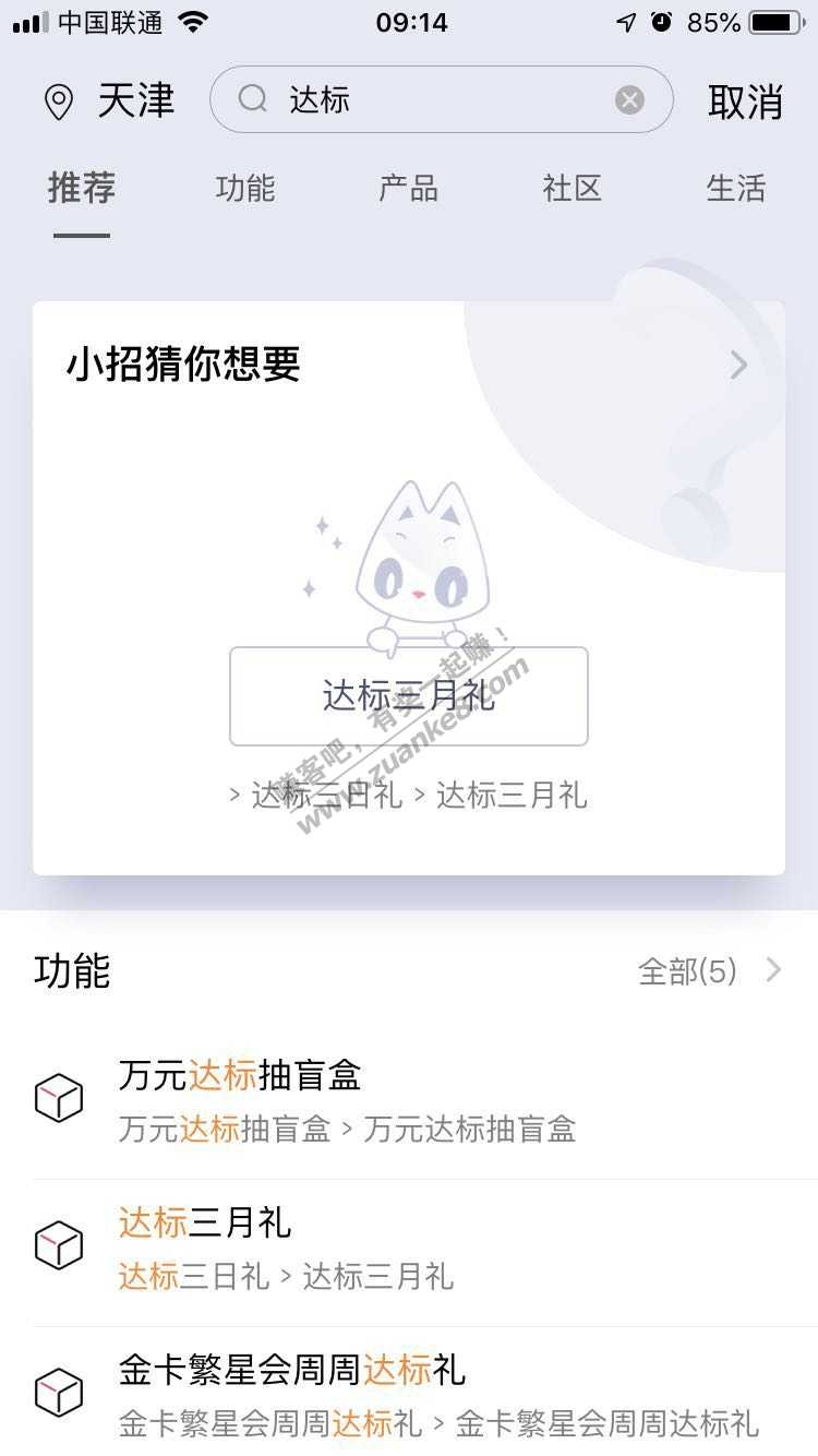 招行app 搜达标 --- 达标三月礼-----选礼物