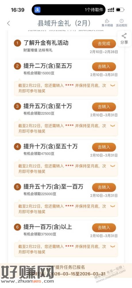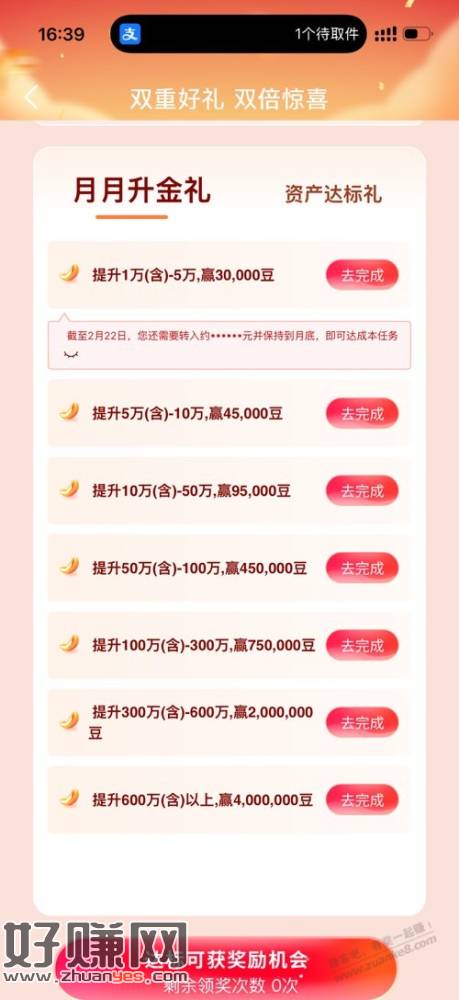 仅针对工资卡客户,升金有礼是双倍奖励,50w的话给升金有礼900块钱豆子,县域升金225块钱豆子,还有地区分行活动,以及限时升金等其他活动叠加的话就更高了,双倍奖励前两个月就有了但也是这两天才找到出处