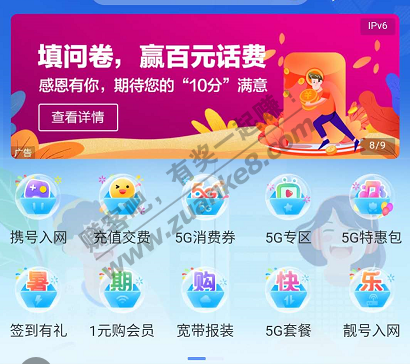 中国移动APP首页轮播界面,话费或流量券毛。全打10分,建议随便写几个字。