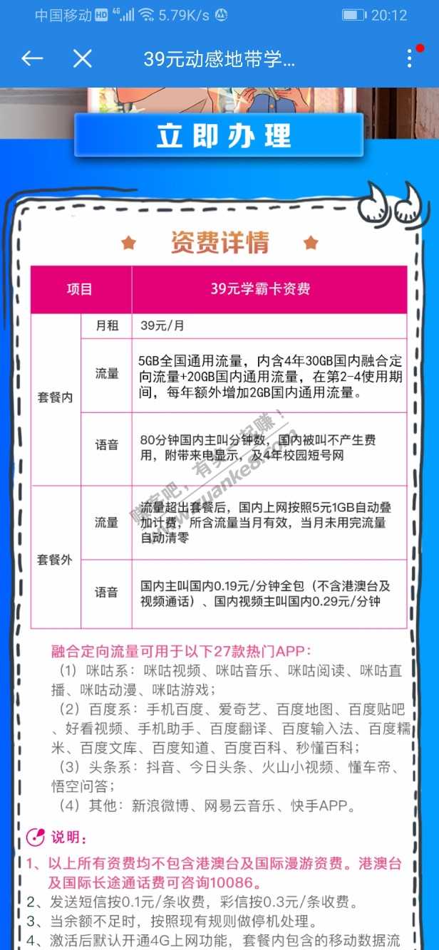 2020广东移动学霸卡