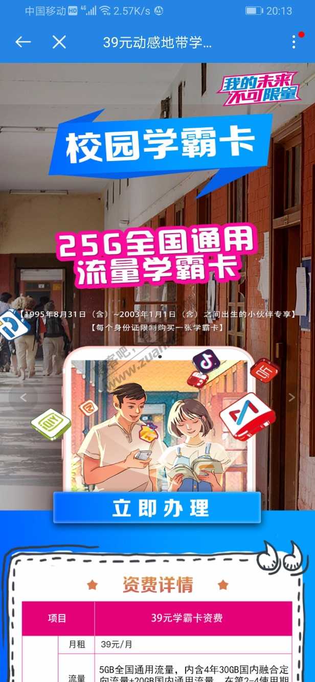 广东移动app刚刚看到的,39元一个月,25G全国流量,对比去年的没有那么划算,有年龄限制,供吧友们参考