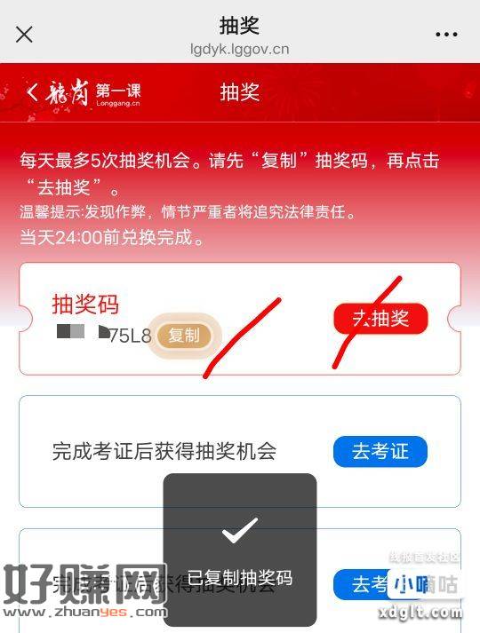 进去注册登陆后,默认可以抽一次,复制抽奖码进去抽