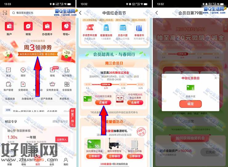 中信周三会员日抽1-20元立减金 亲测1元秒到