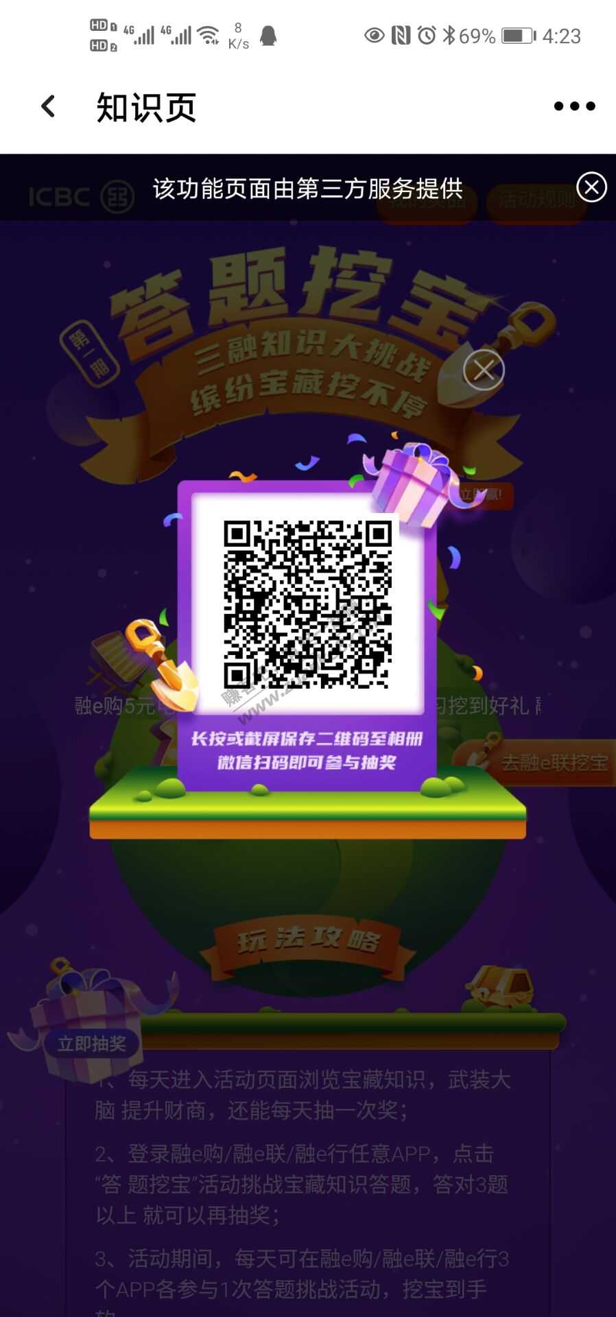 工行再补充一个,微信扫抽奖有机会得5元,我2-1