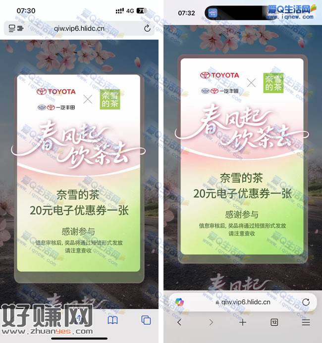 浏览器打开底部地址 填写好信息提交领奈雪20元代金券试试