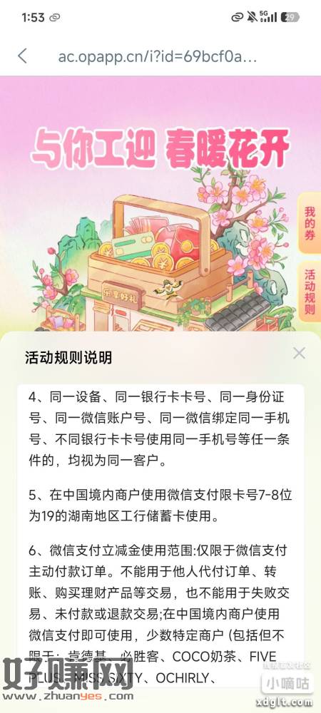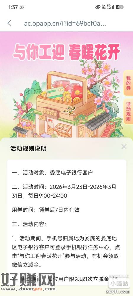 娄底工行,与你工迎春暖花开活动,限制手机号要娄底归属地