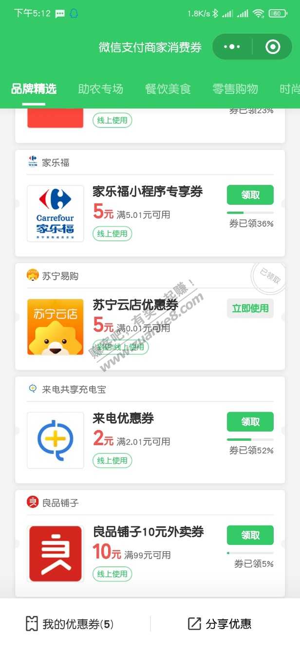 苏宁5元微信消费券