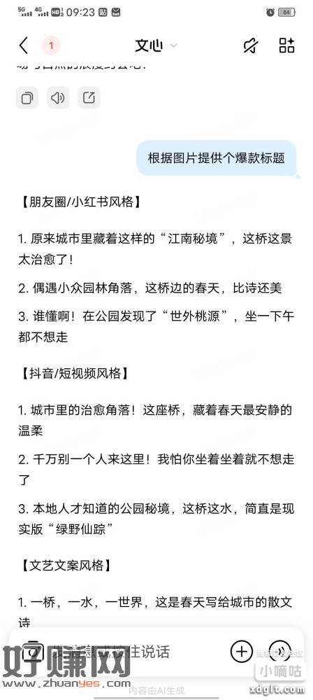 朋友圈找2张风景图,一张发给ai,生成爆款文案和标题,好了复制大众点评即可