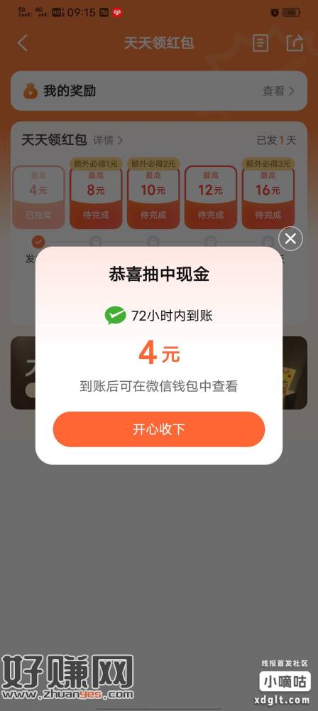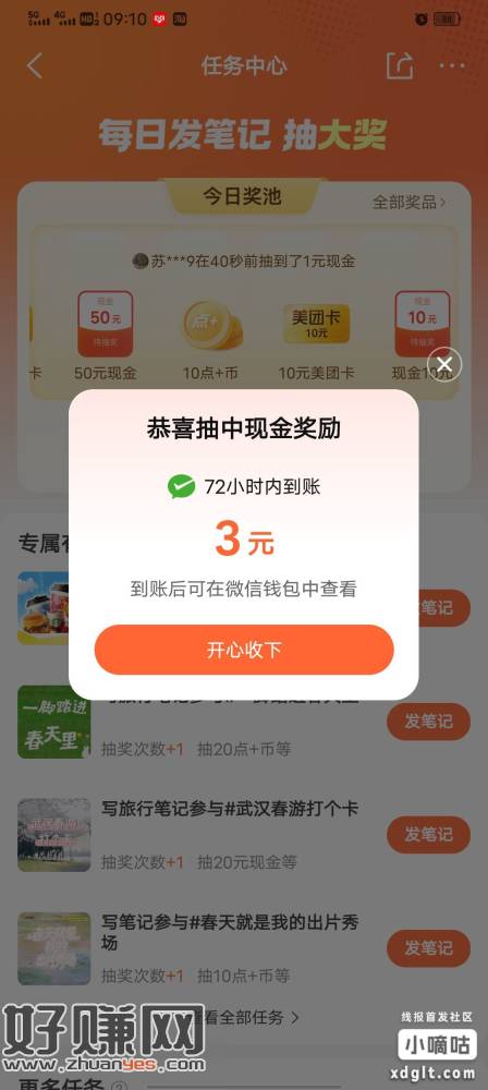 (任务中心,进去发笔记) 3-5分钟后再次打开