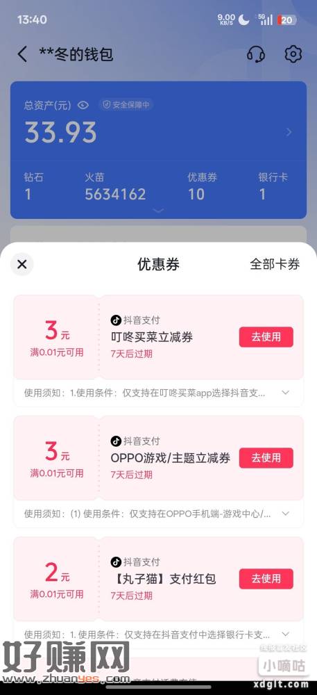 抖音 丸子猫小程序 挖宝三次机会 2支付红包 买了抽纸