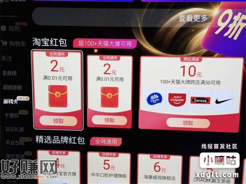 打开电视的淘宝-左侧“省钱卡”