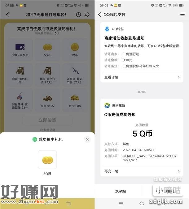 手机QQ扫描下面二维码进去参加小编提示:下拉页面完成分享+登陆游戏的任务可以抽奖2次,每天都可以抽,刚中5个Q币,非必中,安卓手机也可以去“腾讯先锋”秒玩登陆游戏再来抽