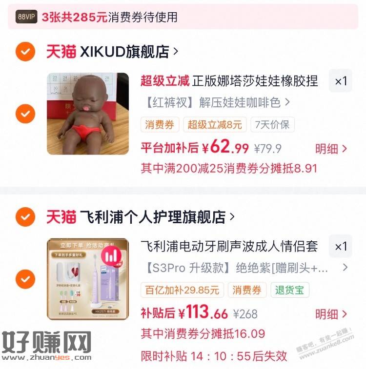 拉详情页进入百亿补贴频道领取3倍补贴29.85元(限紫色款),补贴69元,下单1件,实付低至143.15元。 下拉详情页进入淘金币频道加购,凑单一件,叠加200-25消费券,到手113左右,我看有人做到了100以下一只,我没有试出来优惠。