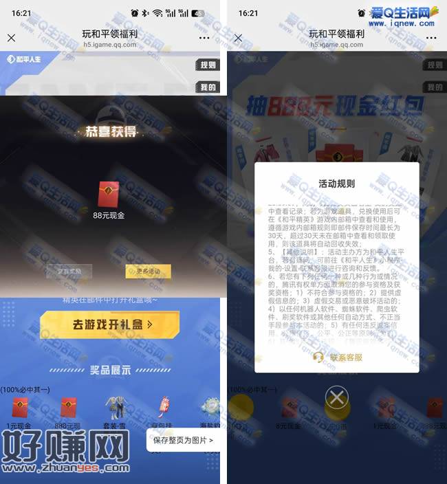 微信/手Q玩和平领福利 反馈88元现金秒到