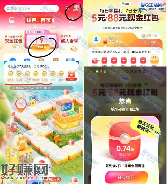 小米手机钱包签到7天必得5-88元现金红包