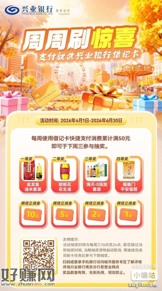 每周借记卡快捷支付满 50 元