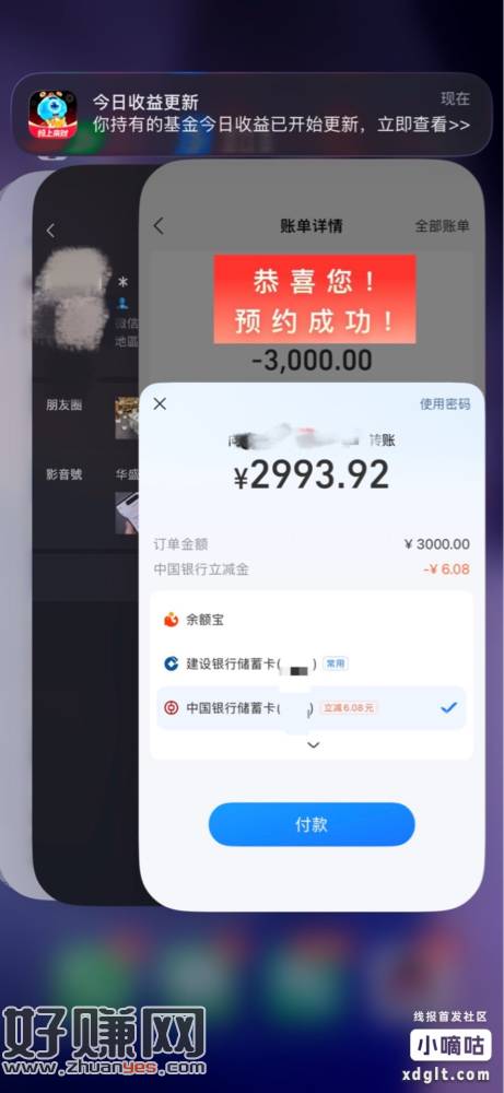 忮苻寶大小号聊天页面发起收歀3k以上,中行付歀立减六块多,全