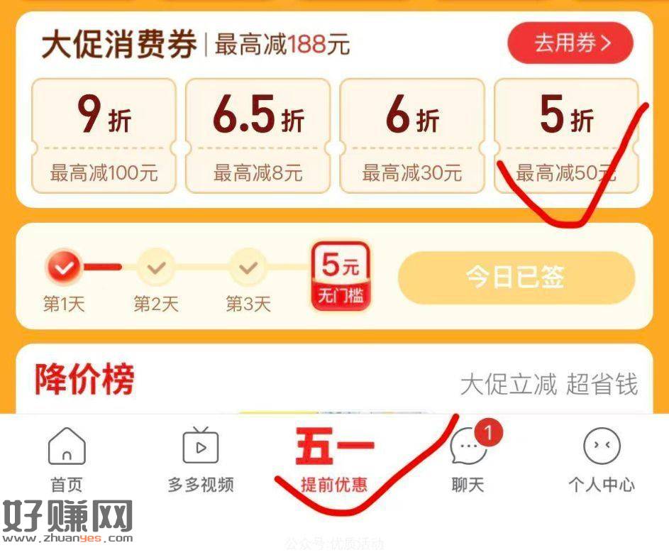 拼多多-底部中间五一 ,部分有五折很多-50 按需看看