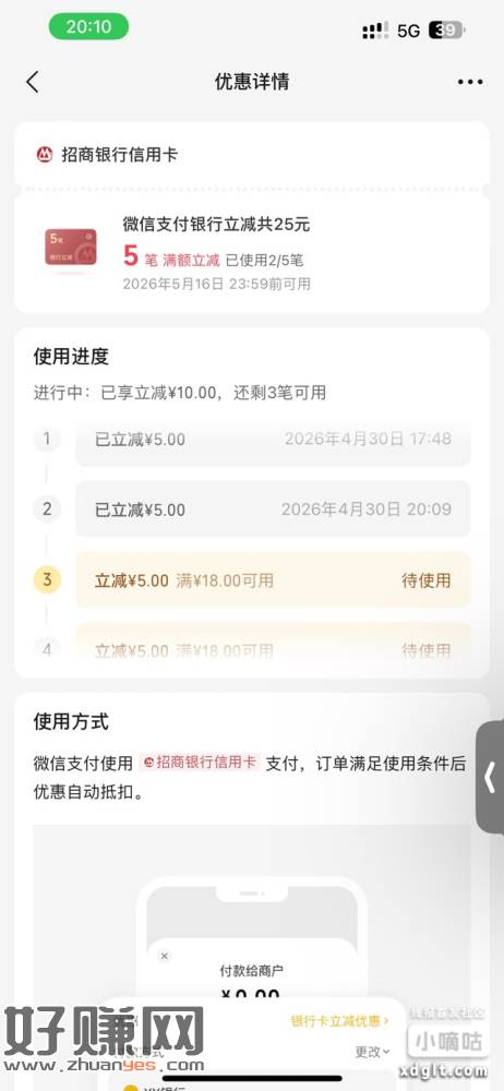 有招商信用卡的去微信支付看看,现在支付有25元立减金的优惠,也不知道是哪儿来的,我不记得有报名过什么活动,也不是微信摇一摇得来的