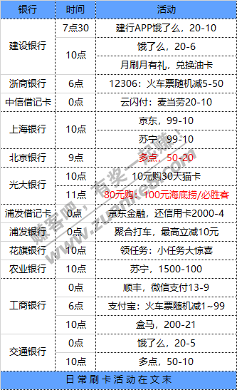 8月10号周一 各大银行活动优惠