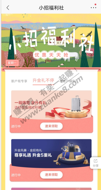 城市服务,福州专区,福利专区点进去,升金礼不停,瘦腰客户完成指定交易5w可领拉杆箱一个