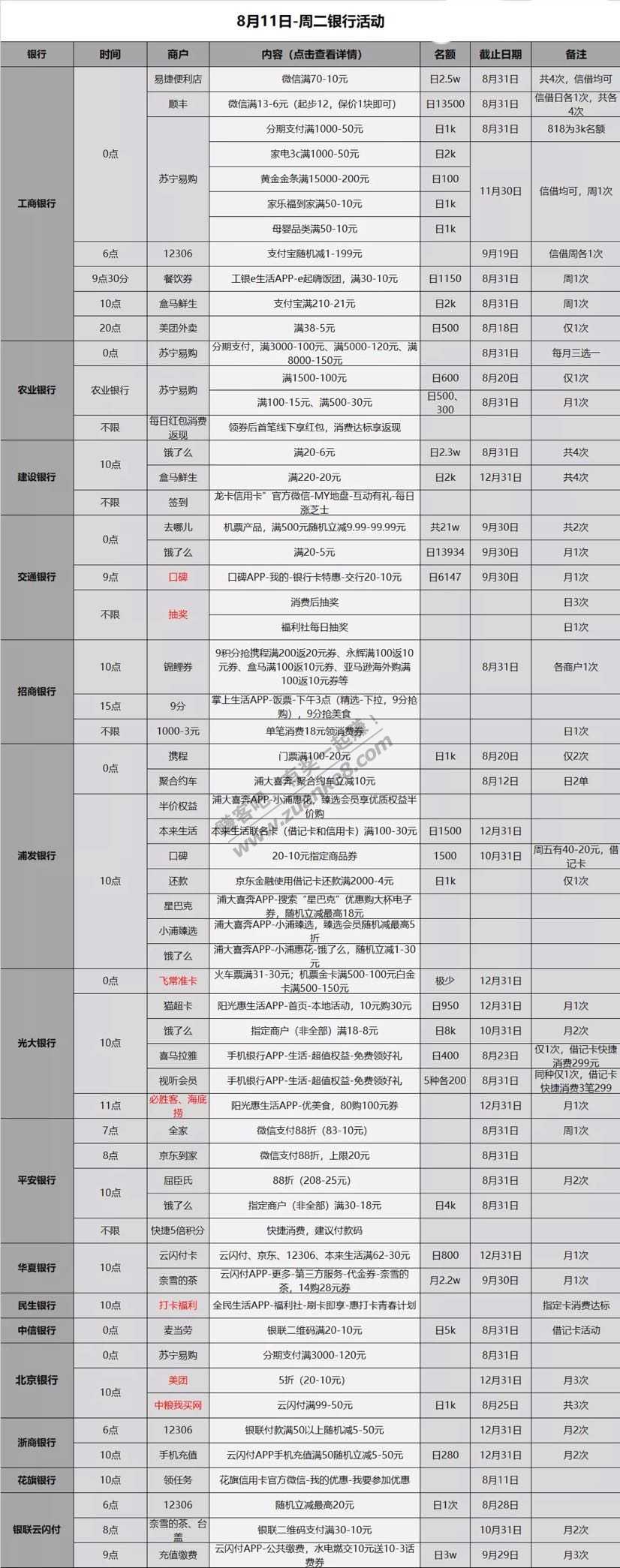 8.11各大银行薅羊毛活动