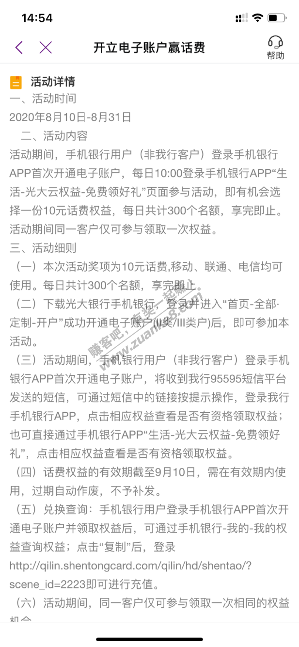 下载光大app开通电子账户,去权益中心领10元话费