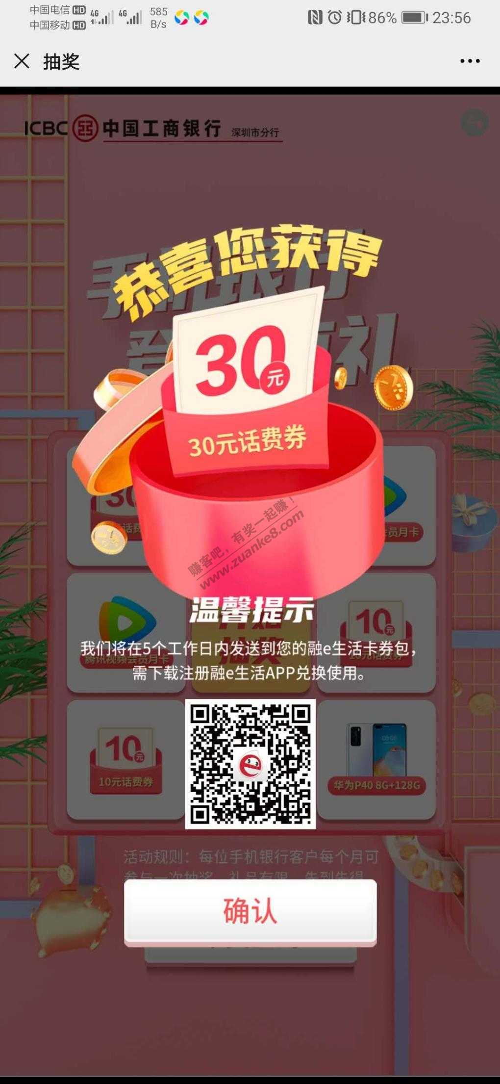 工商首发抽奖,基本30话费