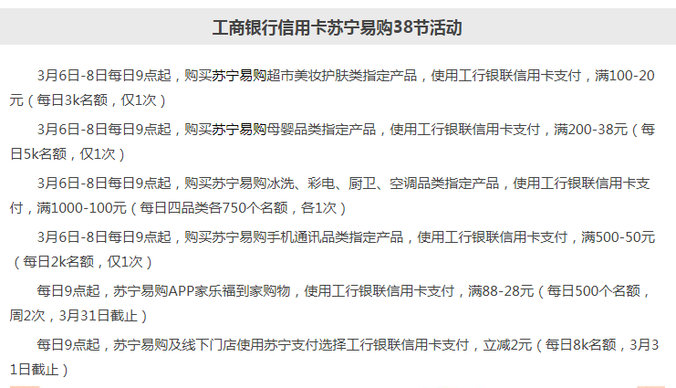 工行苏宁 200-30等一堆