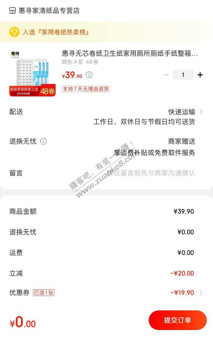 去买纸 0元