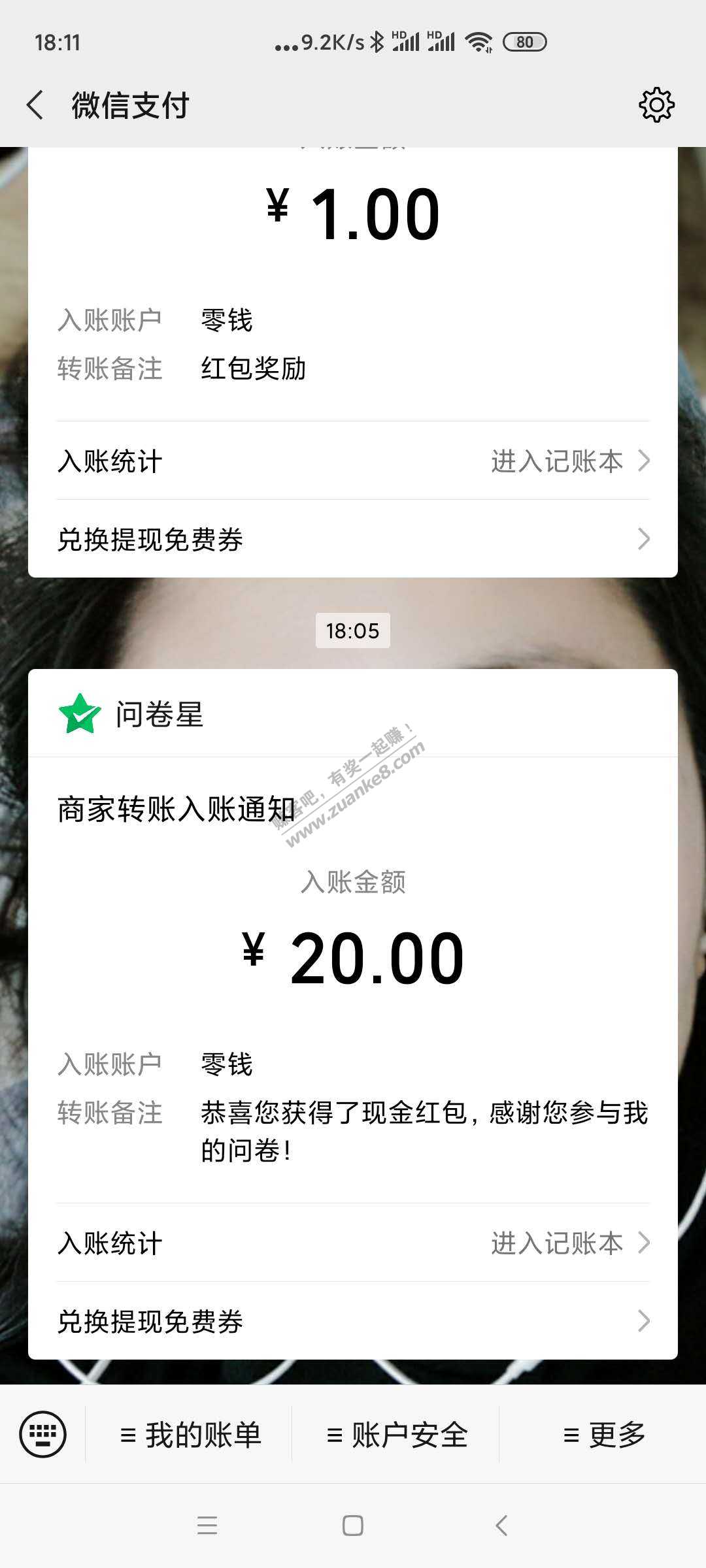 微信问卷必中5元红包,给我冲