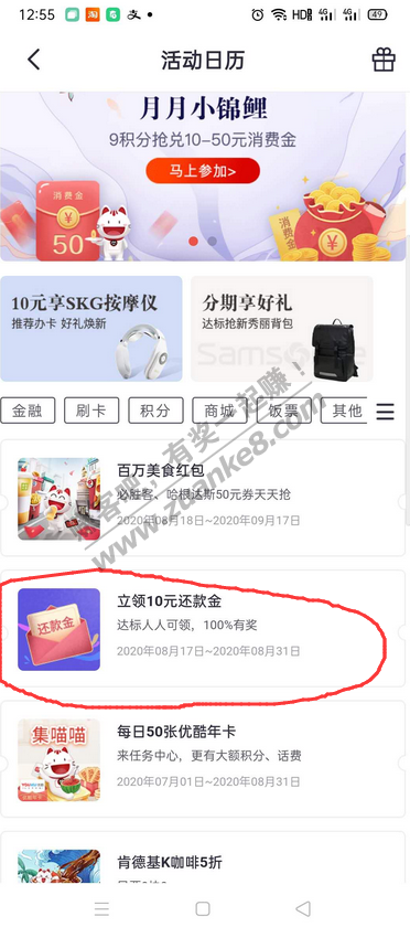 掌上生活——精选——热门活动 活动日历 里面有个立领10元还款金。申请一下就可以领了 电子社保卡。听说假申请也行。