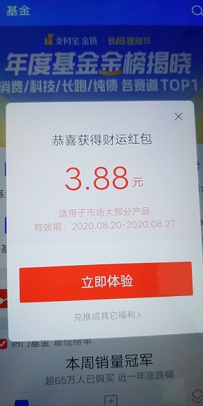 支付宝抽最高888元消费红包 亲测58.88元财运红包
