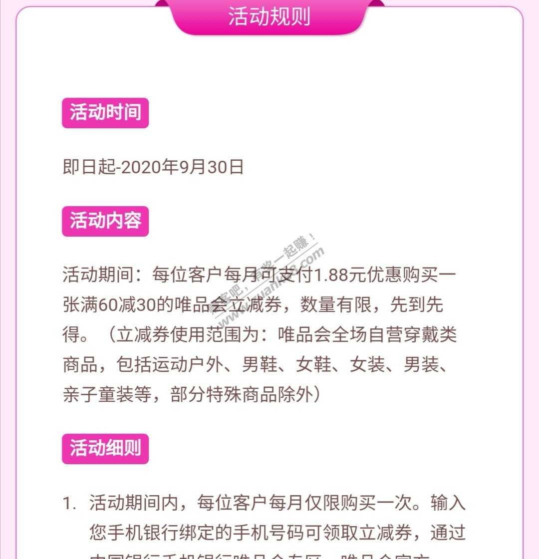广东中行60-30唯品会立减券