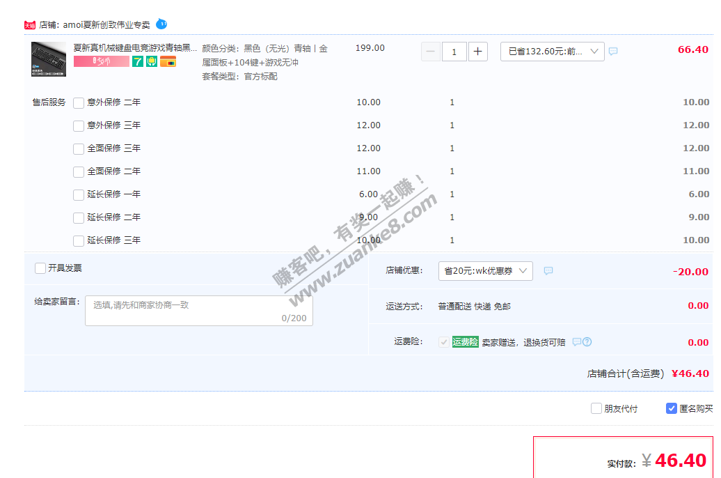 夏新真机械键盘 46.4元 截止至8月21日 01:00有效