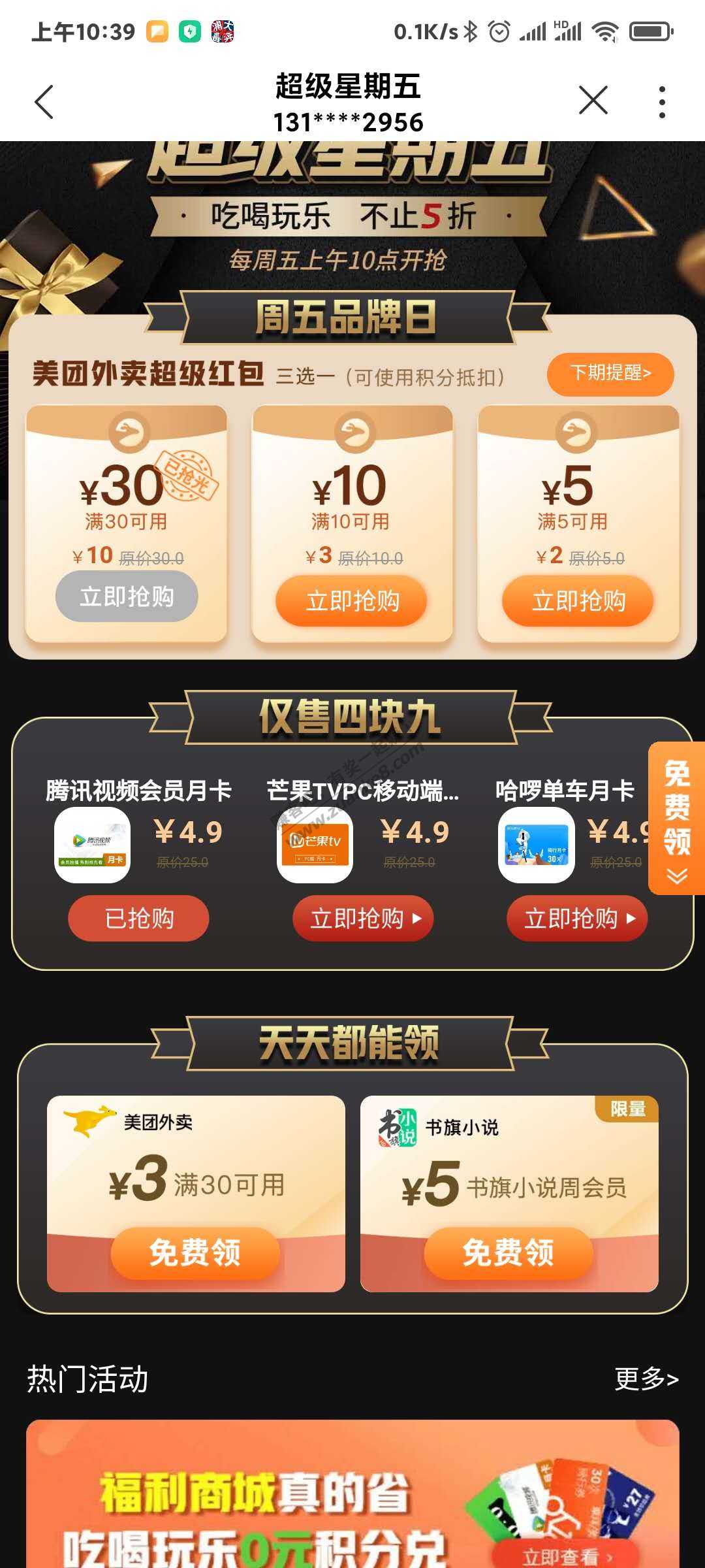 联通APP 4.9买腾迅视频月卡~~可490积分换
