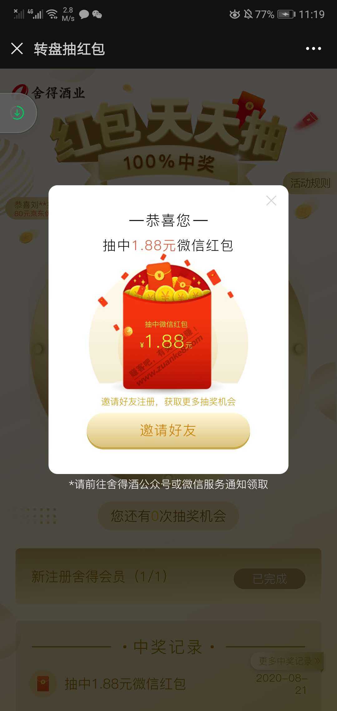 舍得酒 公众号 右上限时注册福利