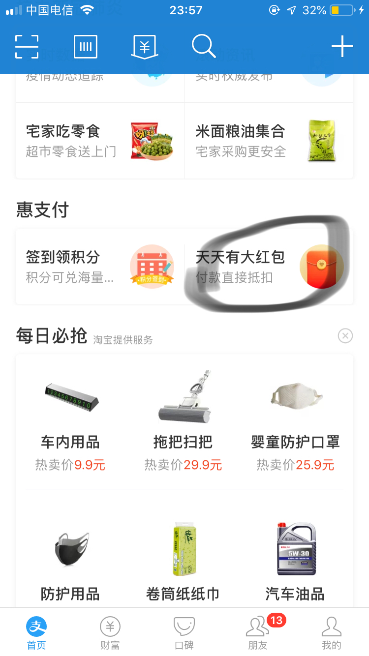支付宝抽最高888元消费红包 亲测58.88元财运红包
