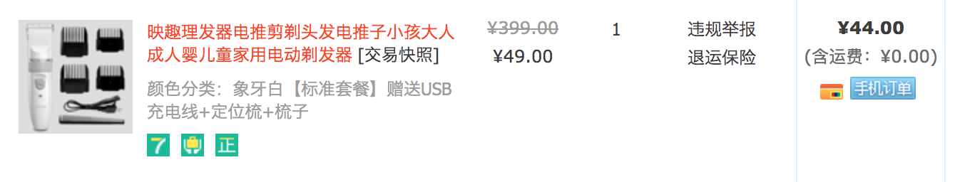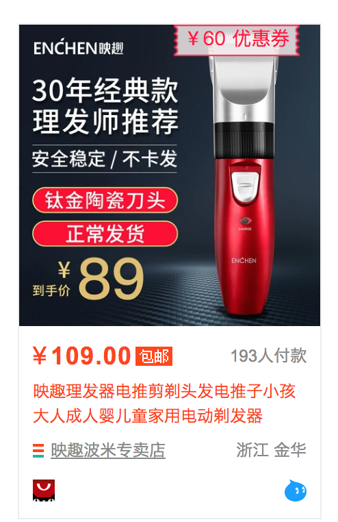 上次39的没撸的可以这次上,淘宝搜映趣理发器电推剪剃头发电推子小孩大人成人婴儿童家用电动剃发器还有后妈佣金
