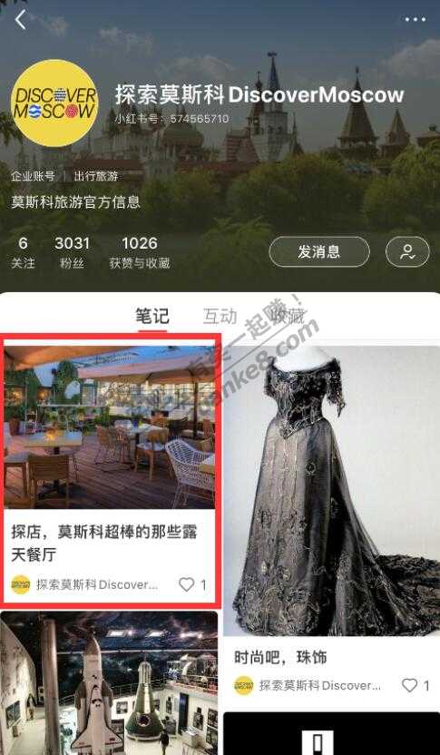 打开小红书搜索“探索莫斯科DiscoverMoscow”,进入第一篇笔记,然后只需要按要求关注他们并点赞收藏这篇笔记,就视为成功报名此次活动,目前报名的人很少,从点赞收藏可以看得出来,机会还是蛮大的哈哈,上次那个冰激凌中奖的都收到了吧